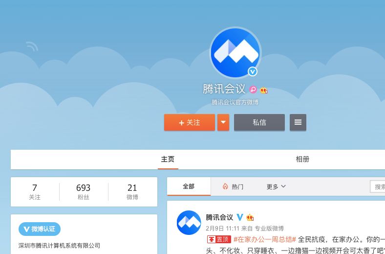 但腾讯会议应该是没有公关,比如它的官方微博粉丝数只有693个。