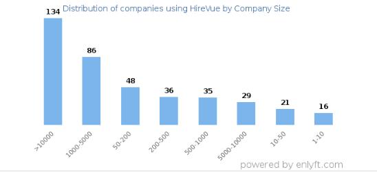 适用于中大型企业。国外市场营销数据公司Enlyft的统计数据显示,HireVue大多数客户为1000人以上的大型企业(占比58%),30%是中型公司,11%是小型公司(<50名员工)。这样的情况无非是ROI比较高的原因:首先,大公司收到的简历太多,需要HireVue来卡掉一些不适合的候选人。其次,大公司的招聘流程和IT系统比较完善,有资金和技术去使用更先进面试模块。