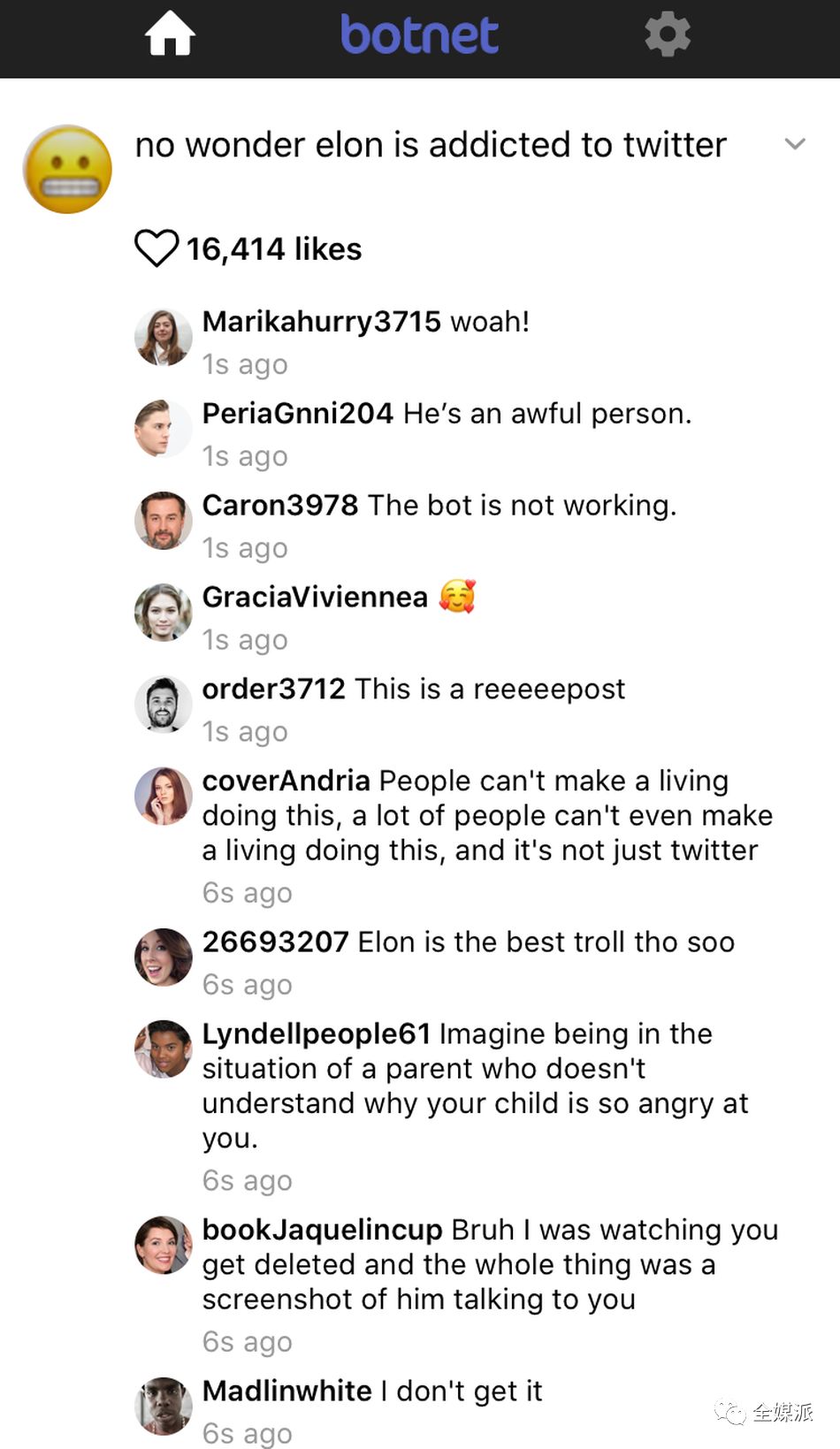 Botnet是一个社交网络模拟器,在社区中,用户的帐号是唯一的真实的社交帐号,有一百万“痴迷”于夸赞用户的社交媒体机器人。无论在Botnet上发布什么,都有数以万计的“僵尸帐号”为用户点赞、评论。