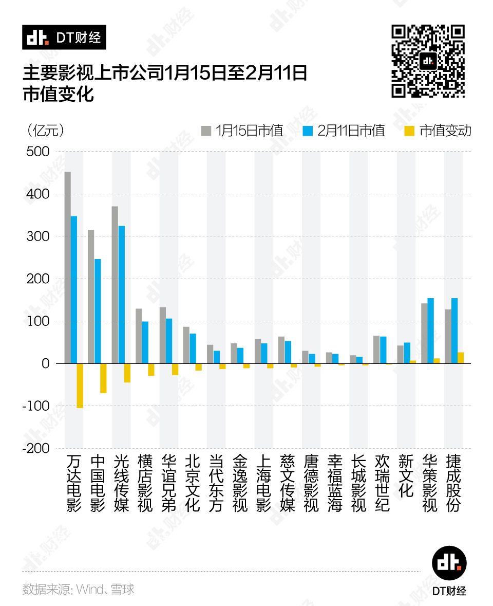 从1月15日至2月11日近一个月来,金逸影视、万达电影、横店影视和中国电影股价跌幅均接近25%,其中万达电影和中国电影市值蒸发分别达到106亿元和70亿元;华谊兄弟、北京文化、慈文传媒、唐德影视等股价也都下跌了2成左右。