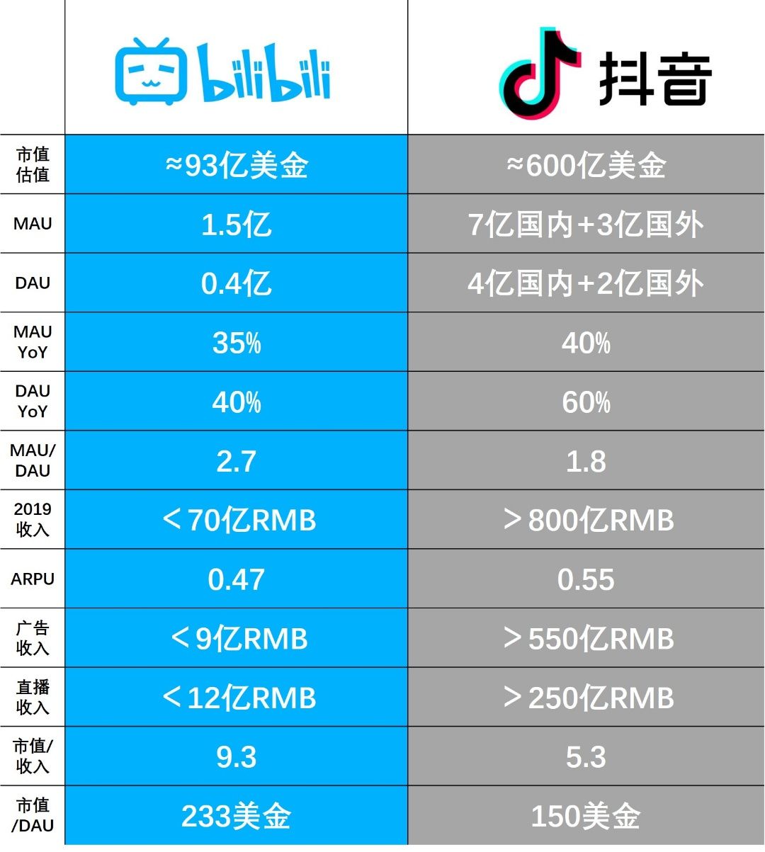 这次的后言和正文没什么关系,正好前两天还和朋友探讨B站到底目前值不值100亿美金,当时我做了个图,虽然也不是很科学的角度,不过也可以作为一个参考角度。