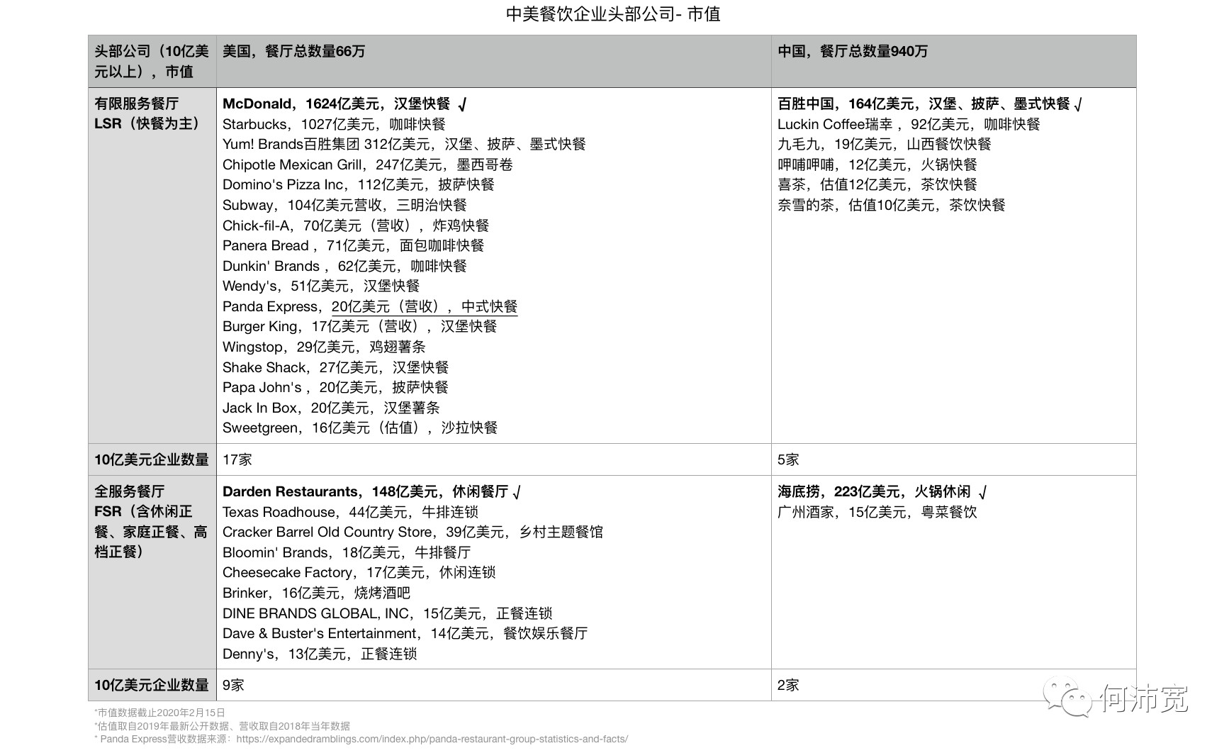 至少从头部品牌的营收能力来看,国内市场下,快餐、正餐品牌单店获得的营收(销售额)的能力,并不低于美国市场环境下的头部品牌。