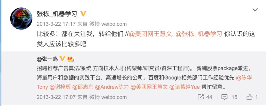 后来到了2015年,微博意识到跟今日头条是竞争关系后,就从头条撤资退出,也曾找过张栋希望投资他借助推荐的力量来打头条。最后好像没了下文。