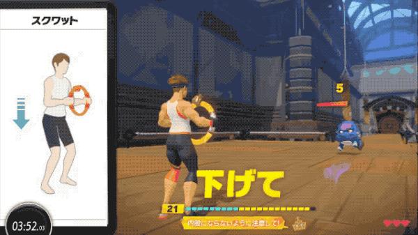 不过,游戏的过程还是得依靠各种健身动作来完成。而不可或缺的,便是健身环环体、腿部绑带和Joy-con 手柄的结合。