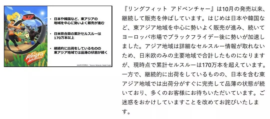 但很显然,任天堂并没有做好应对针对这波热潮的准备。在 2 月初,任天堂就在官网发表公告称,目前 Switch 主机和健身环的制造运输都因疫情受到影响,而生产的短缺无疑也会间接推高产品的价格。