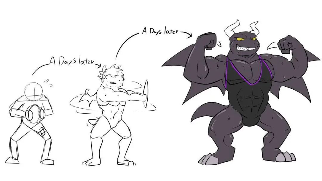比如说最基础的深蹲,之后就会进化成了有着更高攻击力和更大攻击范围的高举双臂深蹲,而面对的魔兽也从最开始有点可爱的小跳跳,变成了耐久更高的大壶铃。