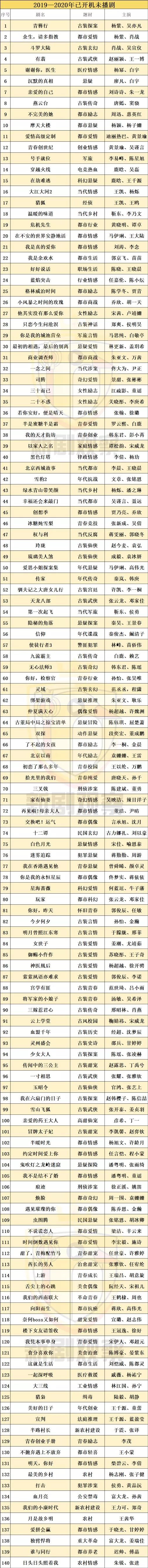 2019年已过审未播剧148部,2019—2020年已开机未播剧290部