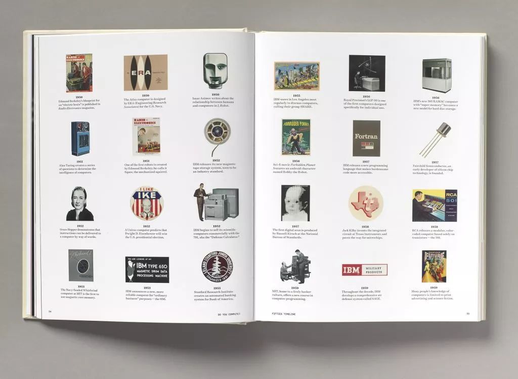 在这50年间,计算机从最初仅被应用于航空、会计等领域,逐渐发展到渗透于人们生活的各个方面,而各种各样与计算机技术相关的广告也在不断演变。五十年代的广告大多以展示计算机产品为主,但在七八十年代却更注重呈现计算机在生活中的应用场景,或是对科技发展未来的想象。Mungia在书中将这些广告按时间的顺序进行排列,展示了这些年来计算机技术出现及发展的趋势。