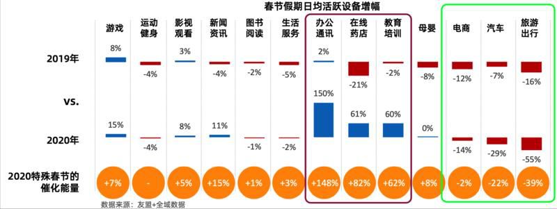 QuestMobile数据显示,相比去年春节,2020年春节期间(1.24-2.2)短视频的时长占比一度超过火爆的手机游戏,快手、抖音因合作央视和地方卫视春晚,用户增量均超过4000万。