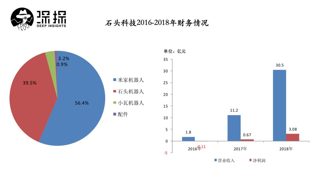 财务数据显示,2016、2017、2018年,石头科技营业收入分别为1.83亿、11.19亿、30.51亿元,归属于母公司股东的净利润分别为-1124万、6699.62万、3.08亿元。