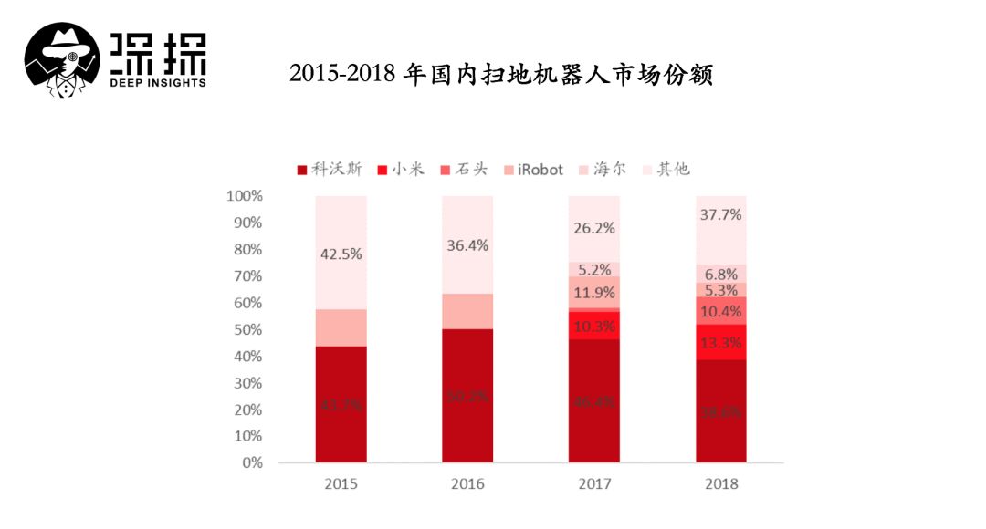 市场参与者包括新兴服务机器人公司、传统家电公司等。而智能扫地机器人行业品牌头部集中效应较为明显。2016 年以前,市场主要品牌有 iRobot、科沃斯、Neato、松下、美的、海尔等。
