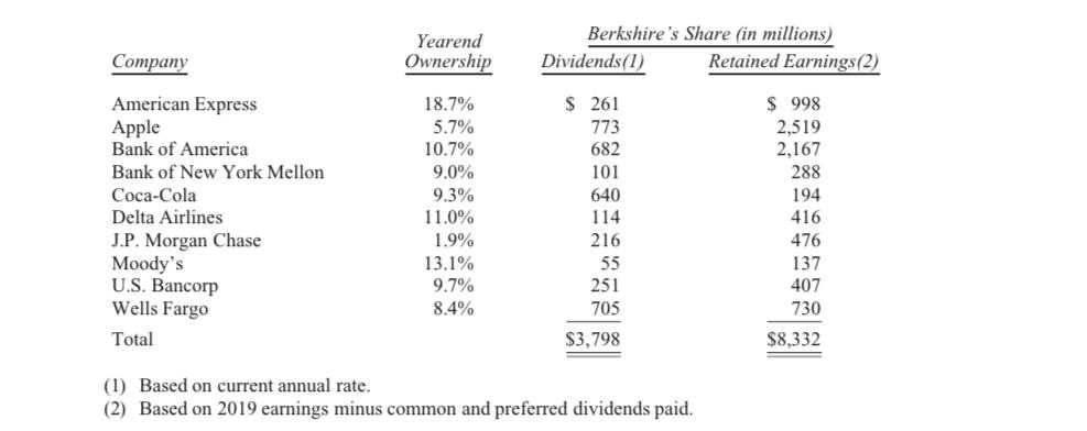 巴菲特在年信中列出通过伯克希尔投资的前十大成分股,指出这些投资只将股息计入伯克希尔的运营盈利数据,但提醒投资人关注这些被投企业的保留盈利。