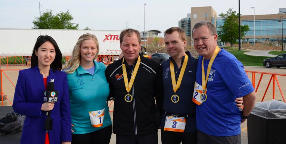 右二为现年49岁的基金经理康德斯(Todd Combs);右一为伯克希尔另一基金经理托德(Ted Weschler),左一系康路。于2014年5月。丁晔摄影。