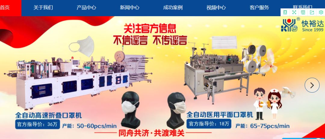 他举例说,大部分口罩机通常只能做到生产自动化,但成品需要工人去手工拣选优次品。2017年,快裕达做了成品自动化的尝试,在出口韩国的一批机器里增加了自动分拣。他们目前有50%的机器出口,为了供应国内,海外订单推迟到了至少6月份以后,技术研发也暂时搁置,但等疫情过去后会继续推进。