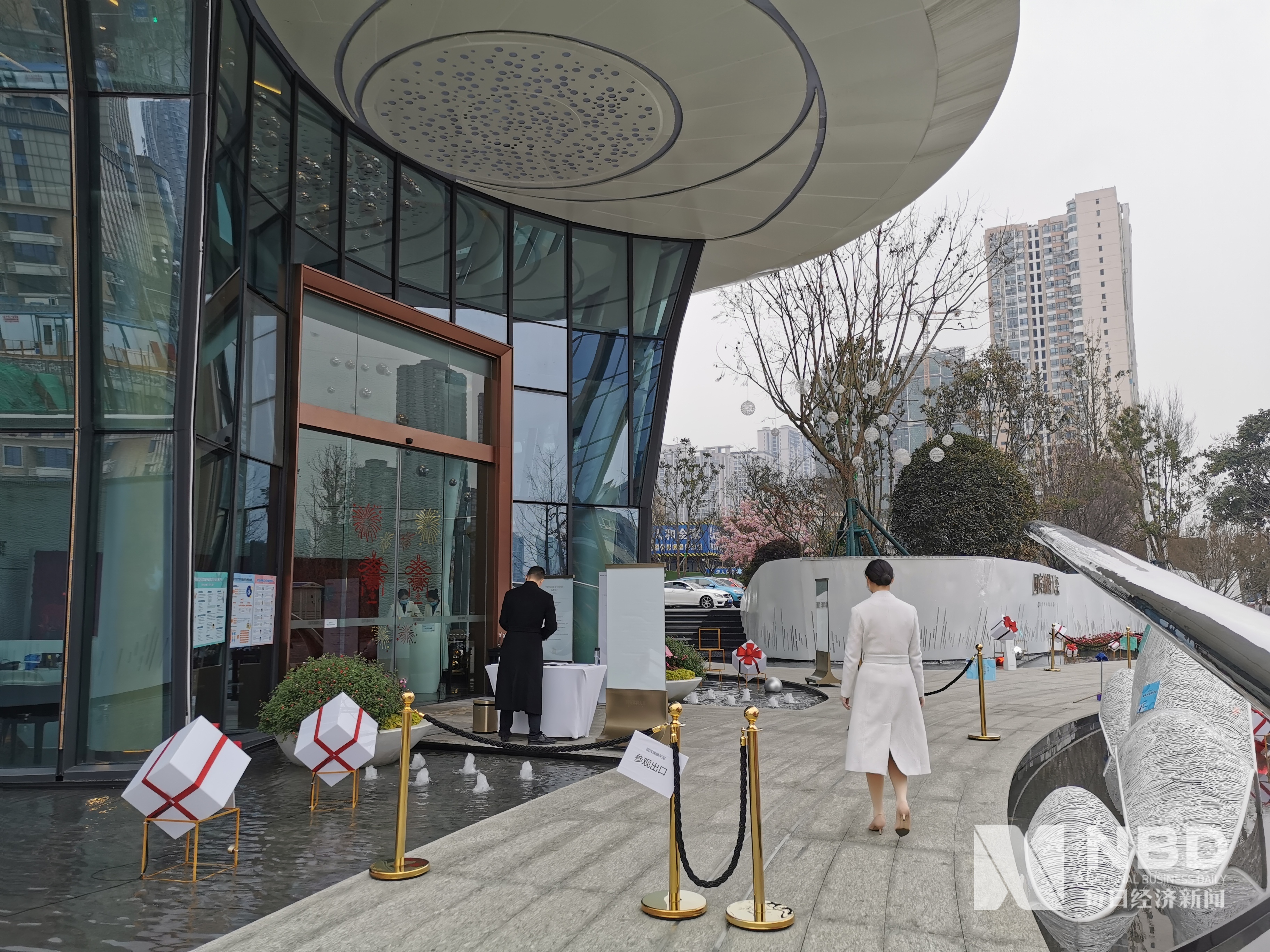 2月22日下午,《每日经济新闻》记者以购房者身份来到位于成都城西中环的国宾•锦麟天玺项目现场看到,售楼处的入口和出口分开设置,项目门口摆放了一排宣传海报,分别是关于防疫工作的提示和流程。记者看到,项目现场所有工作人员都戴了口罩,前台和登记台的桌子上都放了消毒水和相关防疫物品。