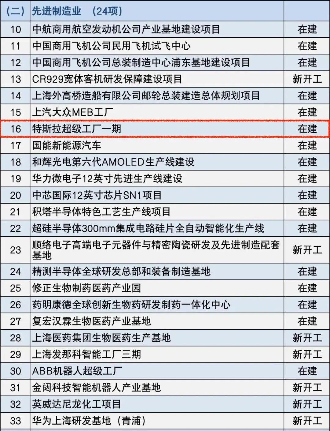 上周,上海市发改委公布了2020年上海市重大建设项目清单,其中特斯拉超级工厂一期被列入正式项目(一共152个),工厂二期被列入了重大预备项目(一共60个)。