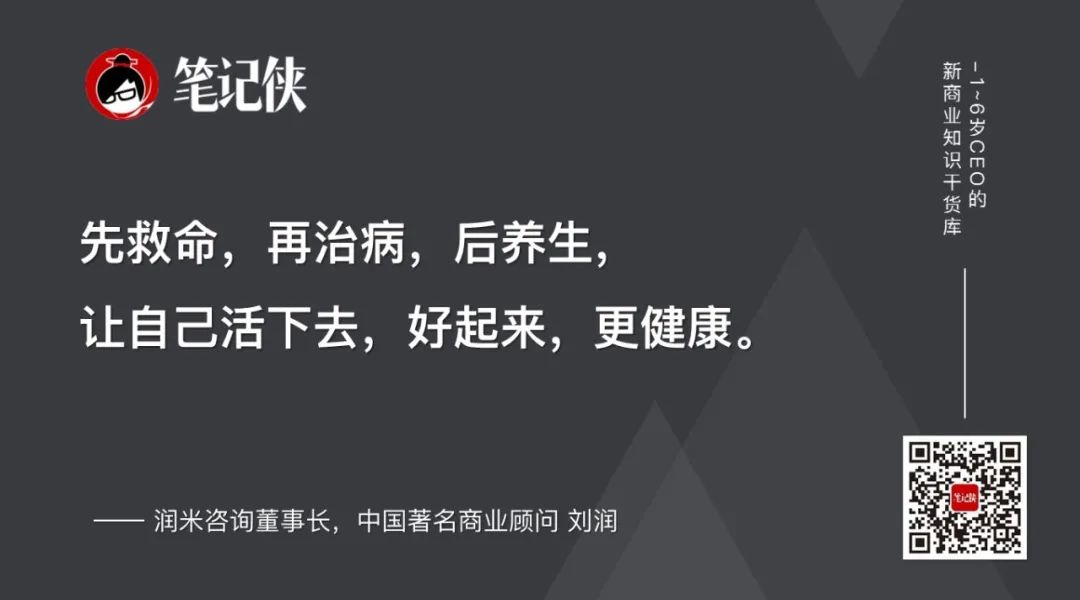 刘润老师分享的很多观点,使我深受启发。比如救命、治病和养生的方法论,以及不同的企业要根据自己的财务状况、运转方式和不同的阶段,去面对各自的挑战。
