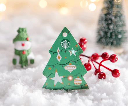 2017 年的圣诞树闪耀款星礼卡,在 POS 机上刷卡时圣诞树会一闪一闪地亮起彩灯。
