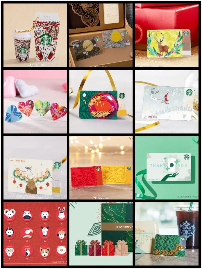 不同的卡片形状、不同的卡面主题、不同的设计风格,作为咖啡品牌,星巴克充分展示了自己的设计实力,总有一款能够戳中消费者的心。