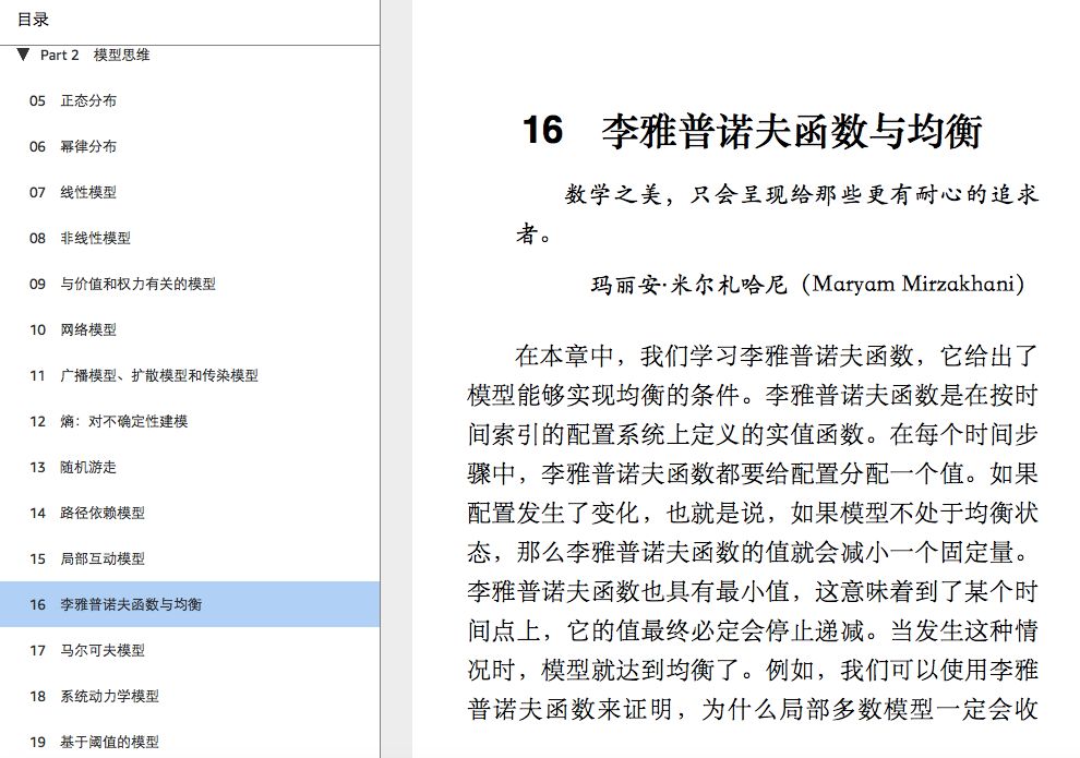 湛庐文化这类型的书非常多,虽然翻译质量层次不齐但胜在选择很多出版速度很快装帧设计也好看,这两本里《模型思维》是最新出版的非常厚,我只艰难的看了三分之一,实在是仅推荐给有数学功底的人阅读,文科生退避三舍,超级大量的干货,给你们感受一下目录,我先投降。
