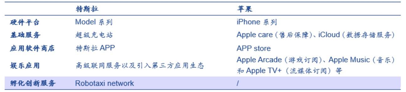 特斯拉与苹果的软件及应用服务生态类比 来源:安信证券研究中心