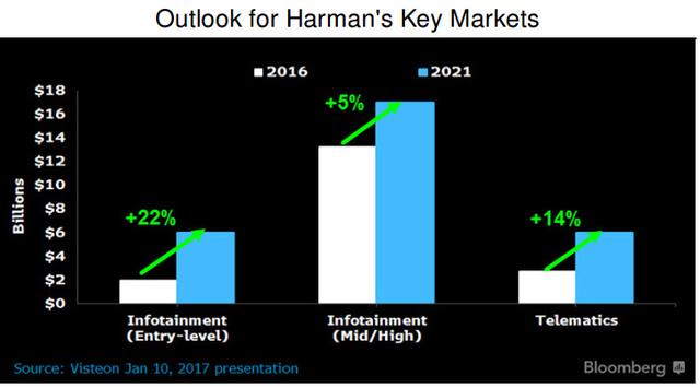 哈曼增长展望-汽车信息娱乐系统和远程信息处理市场的 来源:彭博
