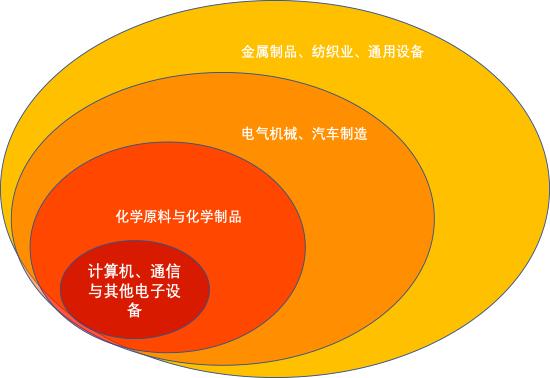 二是高技术制造链条,主要包括电气设备、机械设备以及电子光学设备行业。