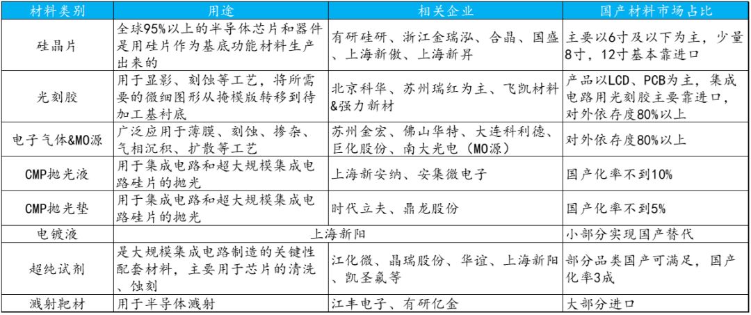 ▼部分半导体原材料国内替代情况