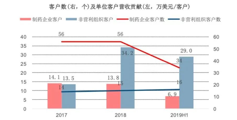 不过,众巢的客户集中度非常高,制药企业和非盈利组织医药行业公益基金会是公司主要客户。公司2016、2017年第一大客户为正大天晴药业,其为中国生物制药子公司,2018年正大天晴在中国化学制药行业工业企业综合实力排名第5。2016、2017年正大天晴药业分别贡献收入2065、2372万元人民币,占收入比重的51.3%、35.6%。其他客户包括北京医卫健康公益基金会、中国健康促进与教育协会、北京白求恩公益基金会等。