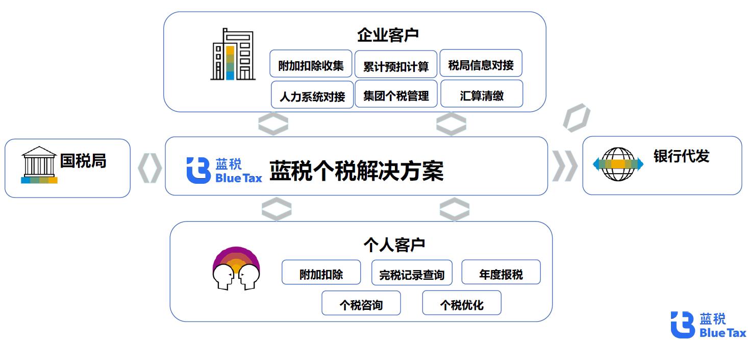 蓝税平台提供的解决方案包含员工信息管理、专项抵扣信息管理、个税计算、个税申报、个税缴纳等功能,与企业人力薪酬系统打通,并与国税系统对接,可以降低企业报税的人力成本及延期风险。