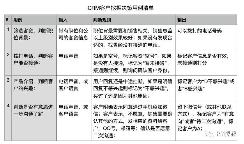 如下图,CRM客户挖掘的业务场景案例:每天,客服人员需要拨打大量的电话,找到对产品感兴趣的客户,以便于销售人员跟进。对于客服人员来说,工作量大而且重复,容易让人烦躁。