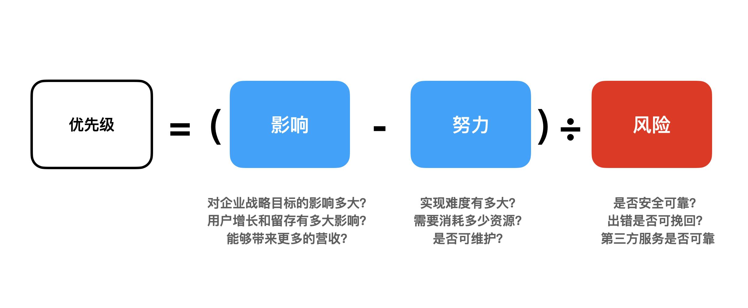 我们可以根据前面的算法模块的拆解,挑选出哪些需要优先做的模块,我们可以从影响、努力、风险三个维度考虑。如下图: