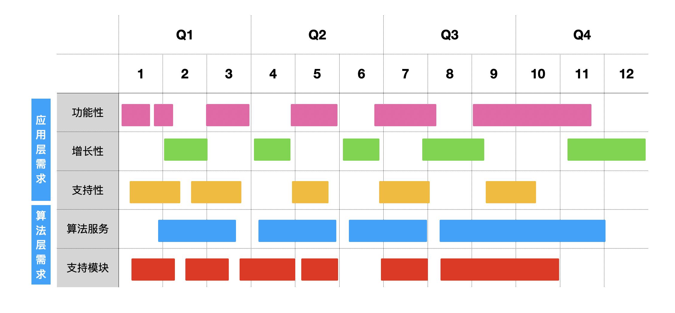基于上面的几点考虑,我将路线图中的需求分成应用层需求和算法层需求两类。
