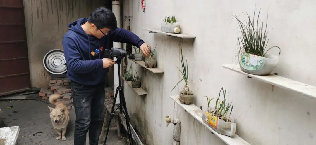 徐大sao在拍摄自己种的大蒜苗,图片由受访者提供