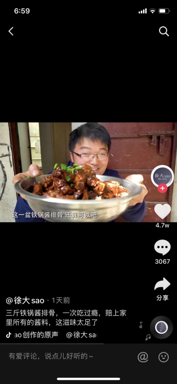 徐大sao还在继续做他的美食vlog,在寻求突破的路径中,不会对自己的风格做出调整。这也是他从长视频平台延伸到短视频平台验证的一个经验,“视频风格千万不能丢了,要在风格坚定的基础上,了解自己,了解用户习惯,根据他们的习惯去做视频,我感觉就差不多了。”