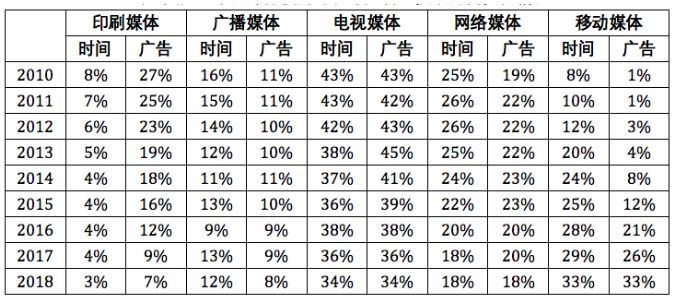 除了移动媒体的增长表现一支独秀之外,另一个重要讯息便是广告投放的流向总是跟随用户注意力的流向变化。实际上,这一点即使不通过数据验证,大多数人也能猜个八九不离十。