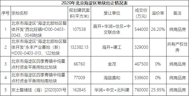 不仅如此,2020年以来,海淀区已经出让了两宗不限价地块,众所周知,前两年北京市场主要以限竞房为主,自从去年下半年以来,开始逐渐增加纯商品房地块的供应,这也是2016年以来海淀区的首次连续出让不限价地块。