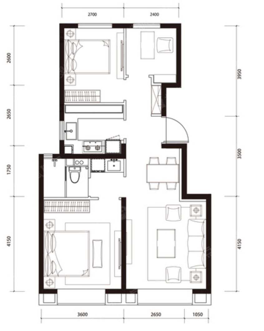 户型;也有89㎡、150㎡三居、180㎡四居,共计8种户型