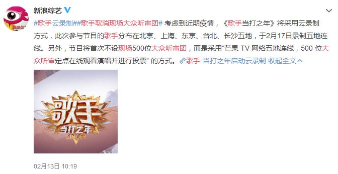 综艺无法正常录制,就只能坐以待毙吗?《歌手·当打之年》宣布一个鬼才的录制方式:云录制。