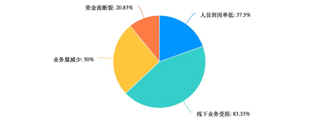 根据问卷显示,企业复工之后,虽然面临着业务量减少、人员到岗率低等问题,然而线下业务受阻占了83.3%,由此可见,线下业务不能顺利展开仍然制约着IP行业的发展。