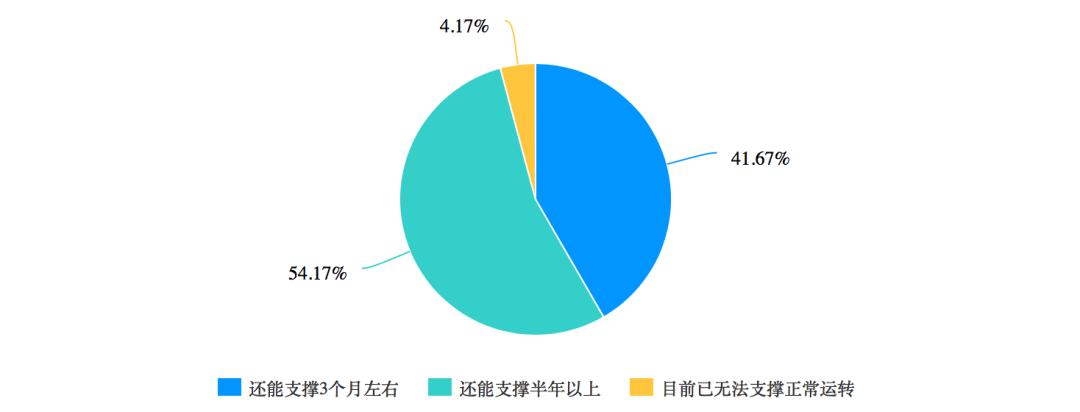 长此以往很多企业未来的发展将难以为继。数据显示41%的企业能支撑3个月左右,而一半的企业只能支撑半年。这就意味着,在这半年期间,企业必须恢复生产,尽可能弥补疫情带来的损失。