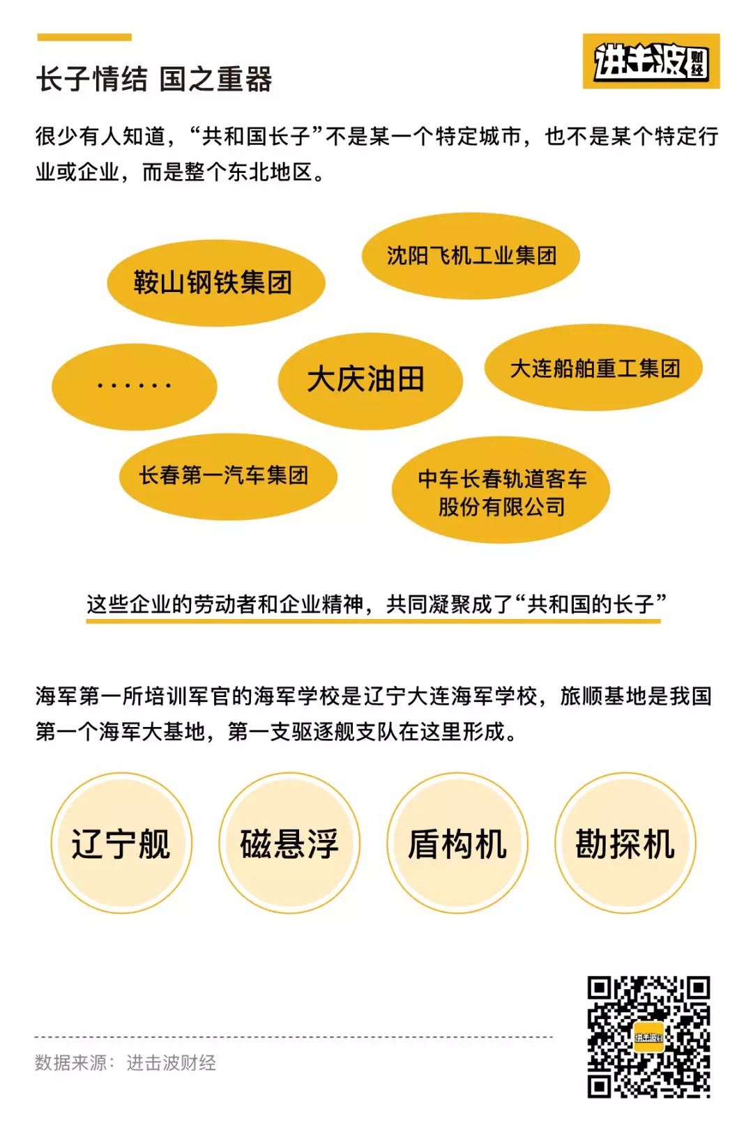 鞍山钢铁集团、沈阳飞机工业集团、大连船舶重工集团、大庆油田、长春第一汽车集团、中车长春轨道客车股份有限公司……这些企业的劳动者和企业精神,共同凝聚成了“共和国的长子”。