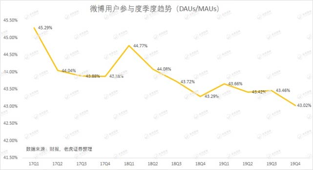 但是,用户参与度没有提高,本季度下行来到43.02%。