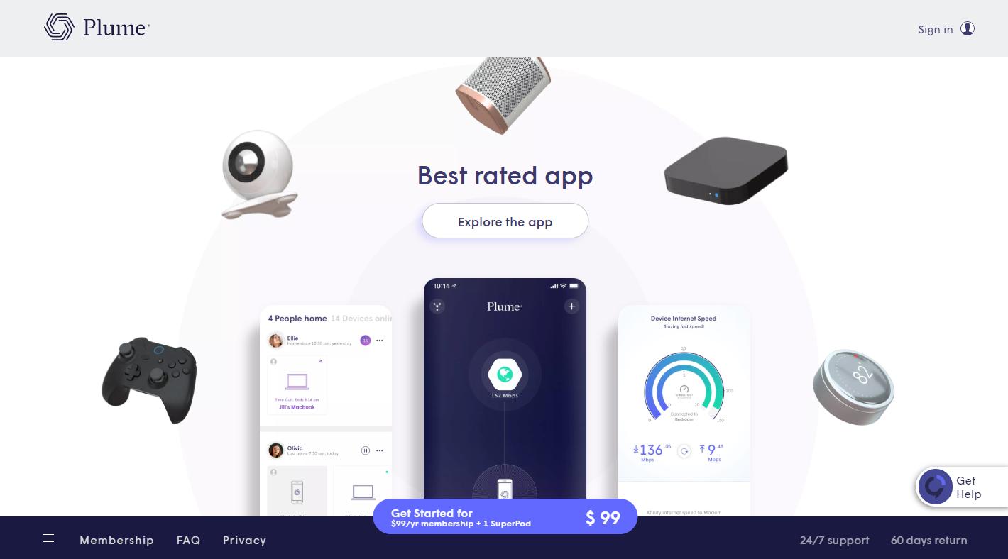 Plume Design 是一家智能家居服务公司,成立于2015年,总部位于美国加州福尼亚州,由 Adam Hotchkiss、Aman Singla、Fahri Diner 和 Sri Nathan 共同创立,旨在提供最佳的硬件和软件组合。为了达到这一目标, Plume Design 的产品,从原型设计到生产,会经历多次严格的测试。
