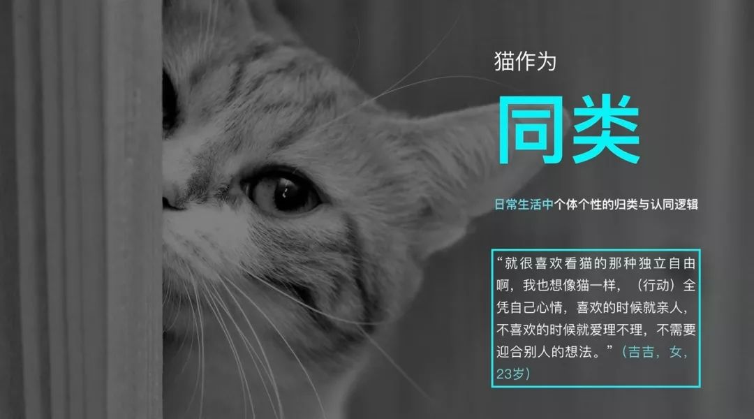 日常生活当中,如何产生猫和人的认同?我们先看一个访谈:她说就很喜欢像猫那样特立独行。(特立独行好像是说猪?其实猫也是一种特立独行的动物。)我也很想像猫一样,凭自己的心情,喜欢的时候就亲人,不喜欢的时候就爱理不理,不需要去迎合别人的想法。