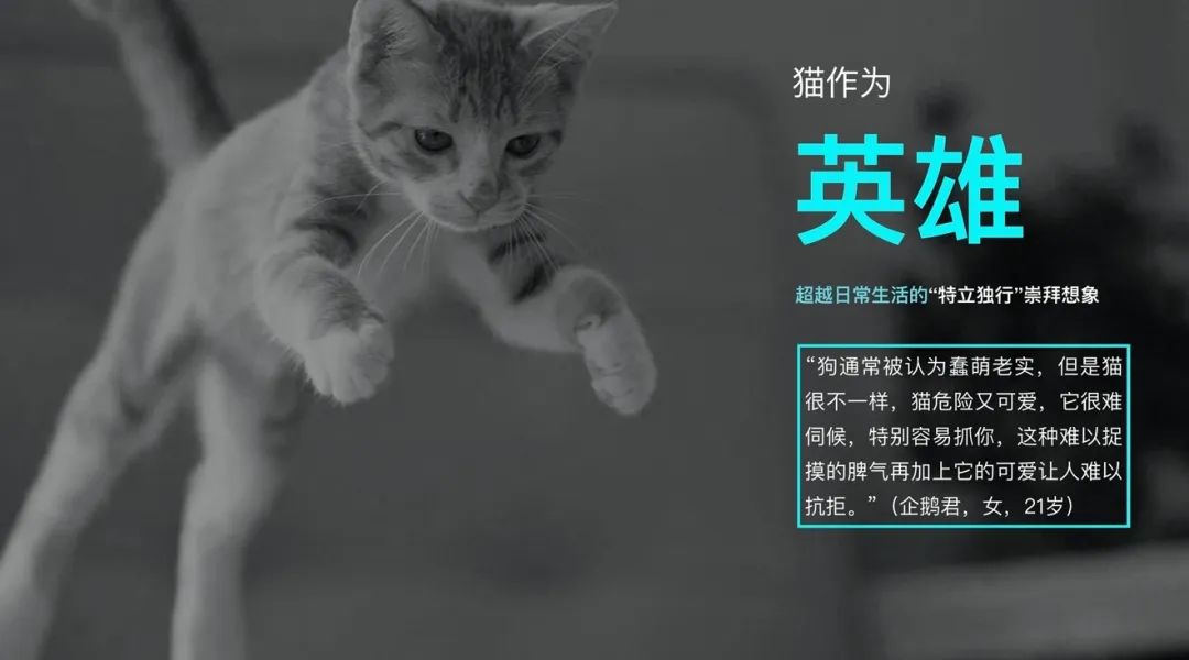 第三种就是猫作为一种英雄,而且是日常生活中的英雄。日常生活当中是需要英雄的,因为我们的生活太无聊、太平淡、太孤独,我们需要有一些超越的东西,就像我们就喜欢漫威一样,我们一定要找到一个寄托品,猫就是这样一个东西。