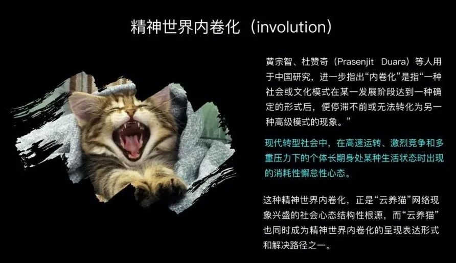 所以我认为这种精神世界的内卷化,已经变成了云养猫网络现象兴盛的社会心态结构性根源——这俩事乍一看没有什么关系,但是人类学者可以把它们扯在一起。