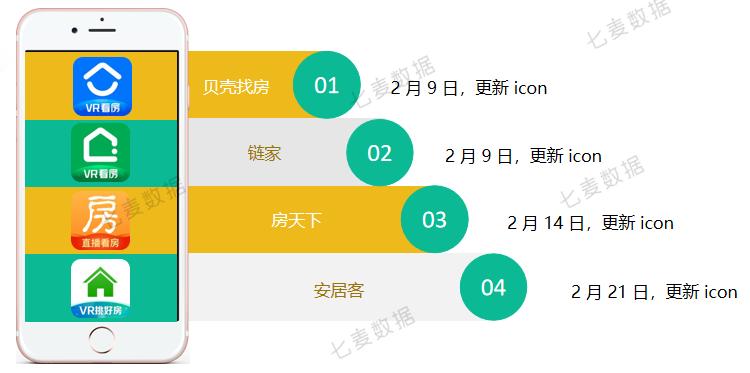 其早在恒大开启线上买房之前,主打租、住房的「贝壳找房」,开始加码主推自家的“VR看房”功能,利用 VR 视角,让足不出户即可观看到房子情况。数据显示,2 月上半旬,用户共在「贝壳找房」中发起 309w 多次“VR看房”功能,同比增长了 213 倍,用户需求较大。同时,除了「贝壳找房」,「链家」、「安居客」、「房天下」等产品,也相继更新迭代产品,并在产品 icon 上打上“VR看房”、“直播卖房”等标志,让用户能直接感受到产品特性。