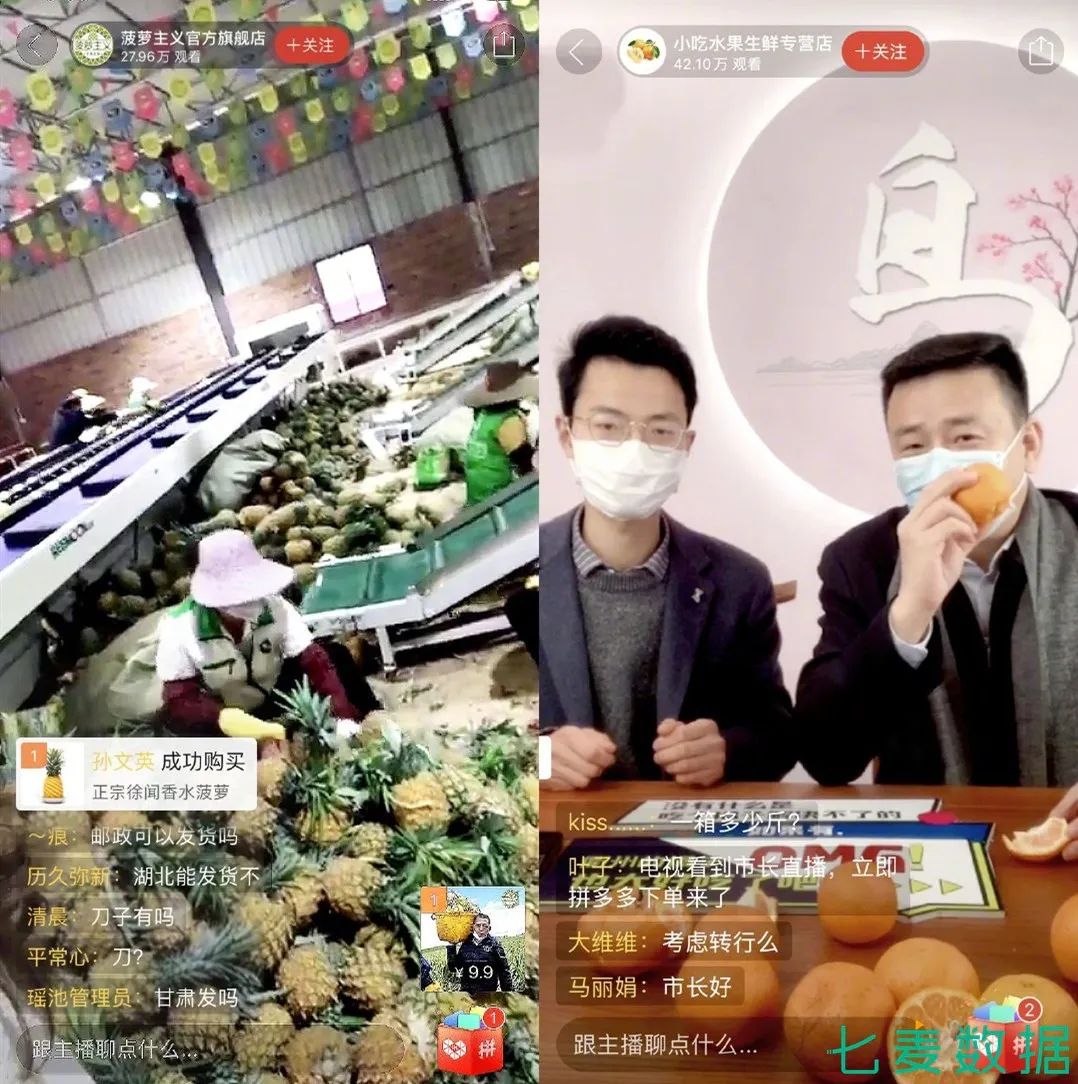 同时,也安排运营人员对商家进行直播教学,或让商家与平台主播合作,让商家能自发的、直接与用户面对面销售。如 2 月 19 日,「拼多多」的助农直播间中,两位县长在两个小时内,累计销售 50w 斤水果。「淘宝直播」发起的“村播计划”中,李佳琦、烈儿宝贝累计成交额超 1000w,极大程度上缓解了农产品滞销的困境。