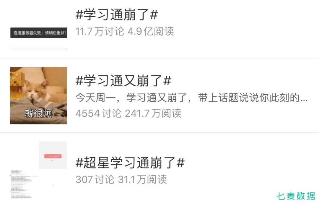 但用户一时之间大量涌入,服务器承受不住而崩了,也容易挫伤用户积极性。其中「超星学习通」在被指定为官方学习产品后,接连崩了好几次,导致学生课表丢失、无法上交作业等情况,引发用户热议,话题“学习通崩了”阅读量也高达 4.9 亿。在此种情况出现时,建议开发者先发通知安抚用户情绪,然后抓紧时间尽快完善产品不足。